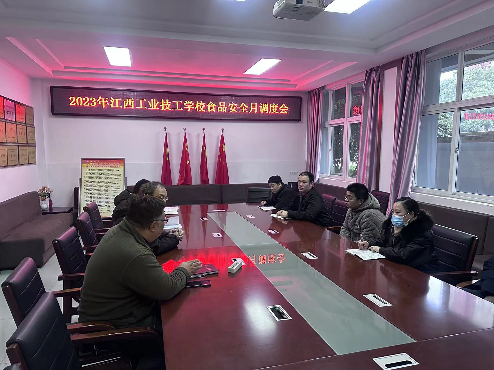 12月20日,江西工业技工学校在一楼会议室召开食品安全月调度会议,校党委书记、校长谭如民,党委委员、副校长应劭霖,总务科负责人陈植及常州百味餐饮管理有限公司副总,食堂方食品安全总监、食品安全员、仓库管理员及供应链代表参加会议。会议由应劭霖主持。
